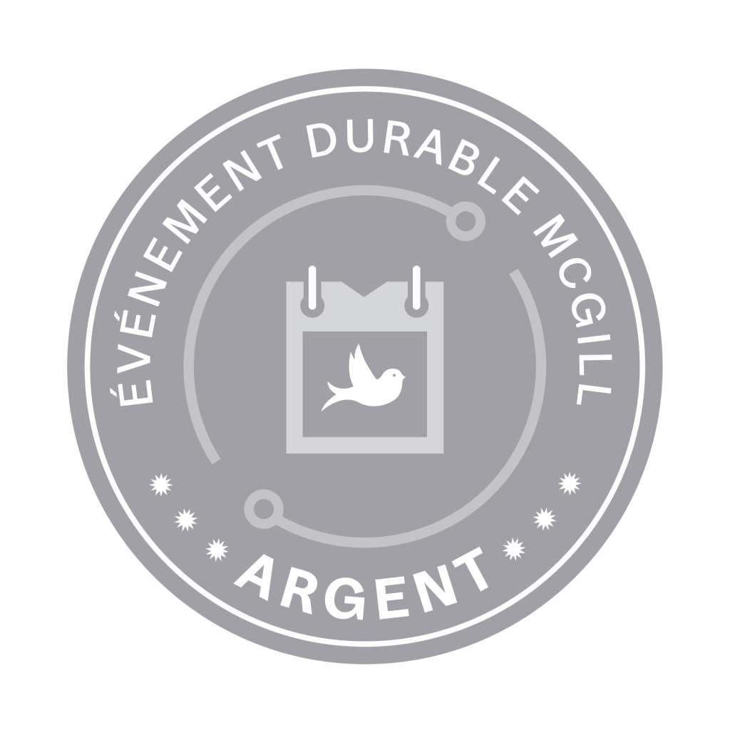 Nous sommes fiers d’annoncer que notre événement a été certifié comme événement D’Argent par le programme Événements durables McGill du Bureau du développement durable de l’Université McGill.
